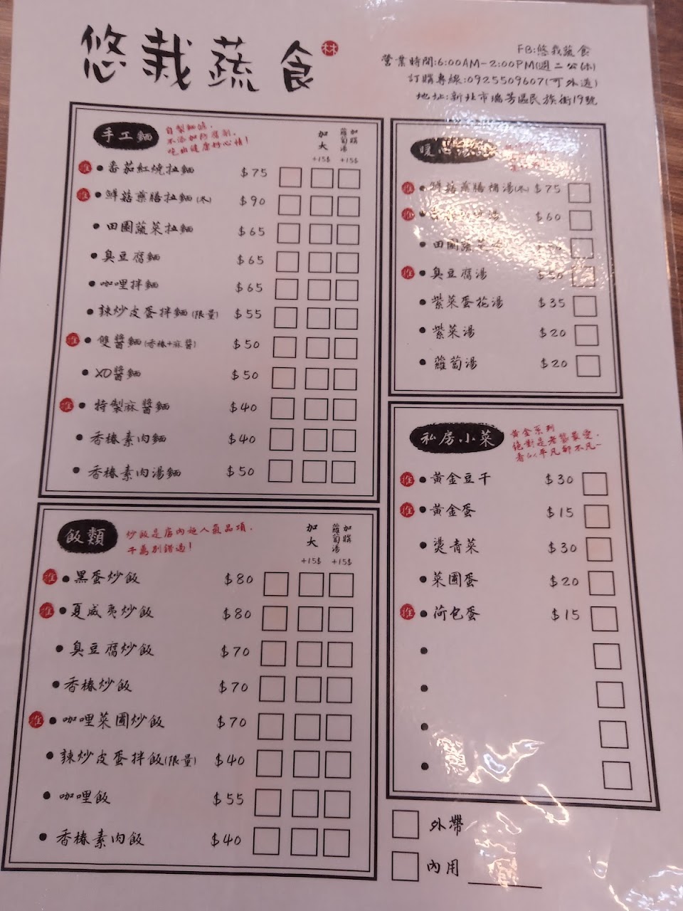 2024最新在地推薦餐廳的菜單_悠栽蔬食的菜單、圖片