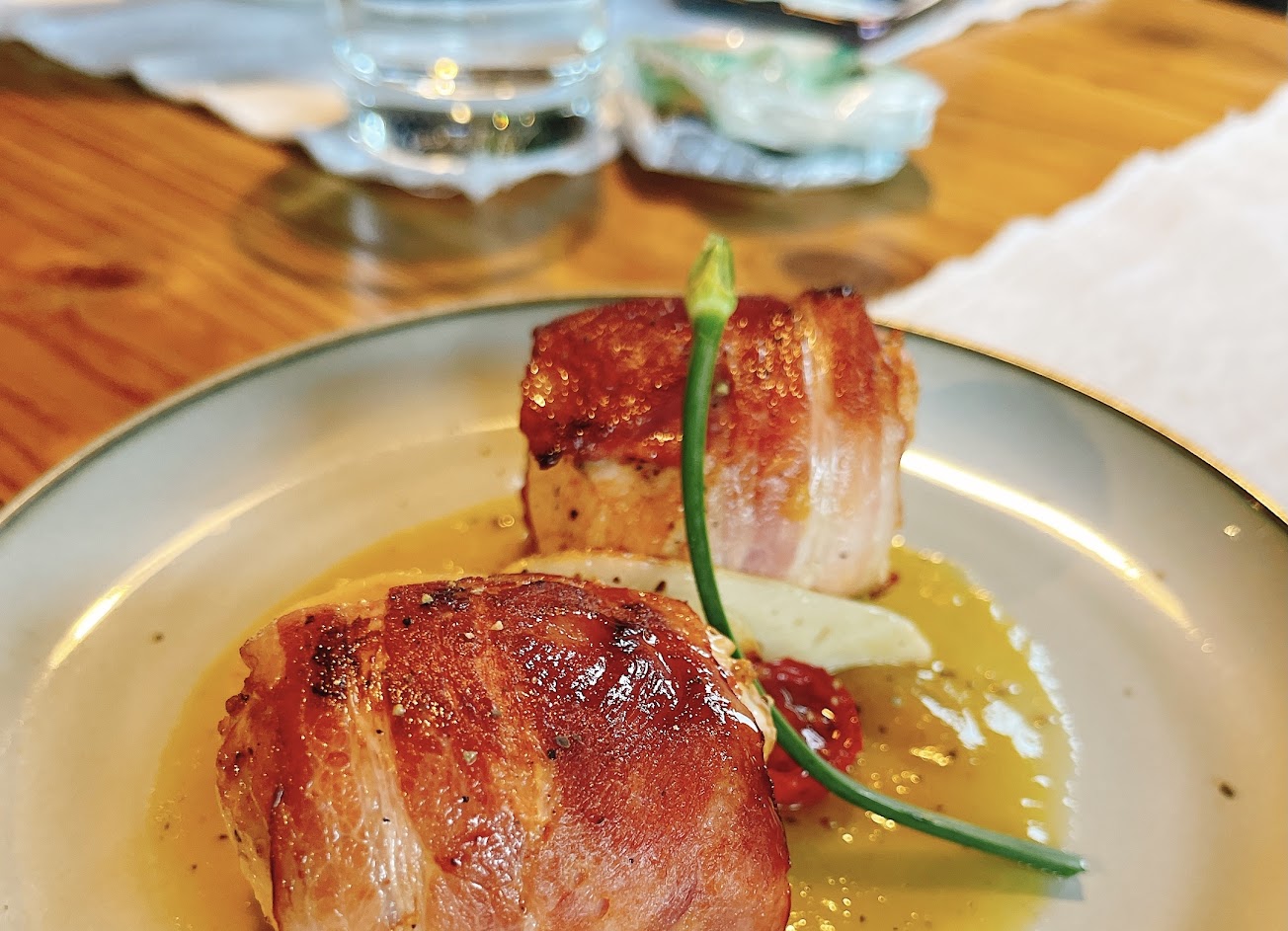 培根雞肉捲的肉質軟嫩配上柑橘醬讓這道菜非常的令人驚艷。其他的菜都蠻不錯的細緻有用心,不會讓人驚艷。配上美景和貓貓。可以!
