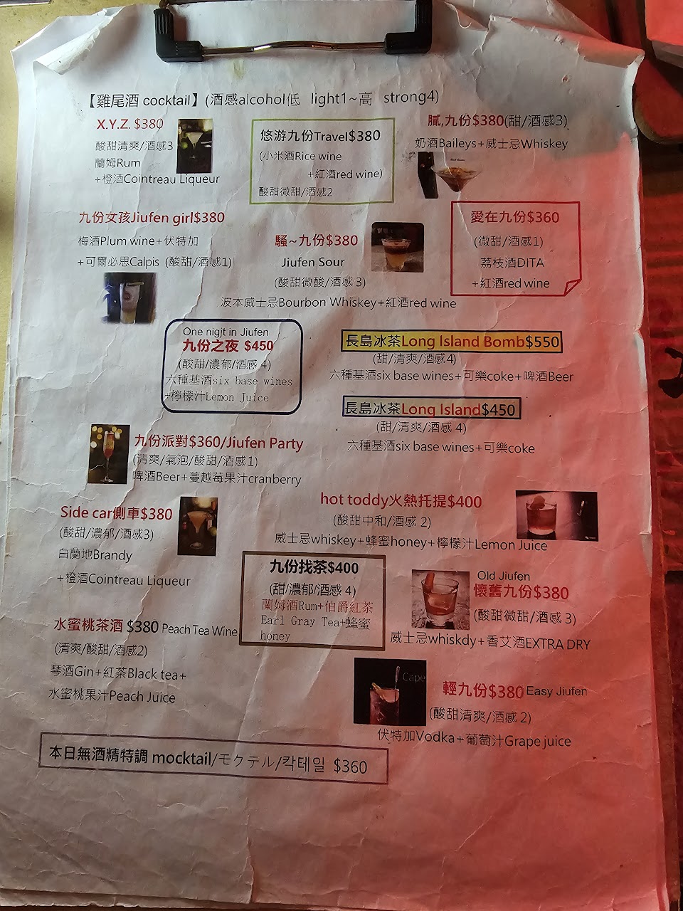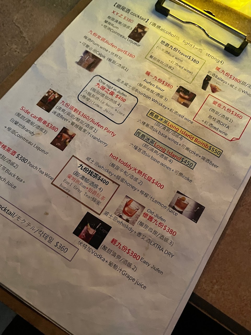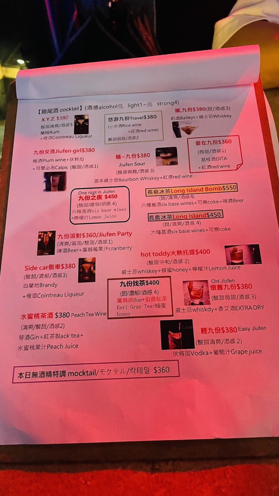 如果你想在九份享受酒吧,就去這裡吧!價格偏高,但是因為是旅遊區就接受吧!還有九份原創雞尾酒。菜單也是英文的,不會中文也沒關係。店裡有一隻貓,每個人都很可愛。