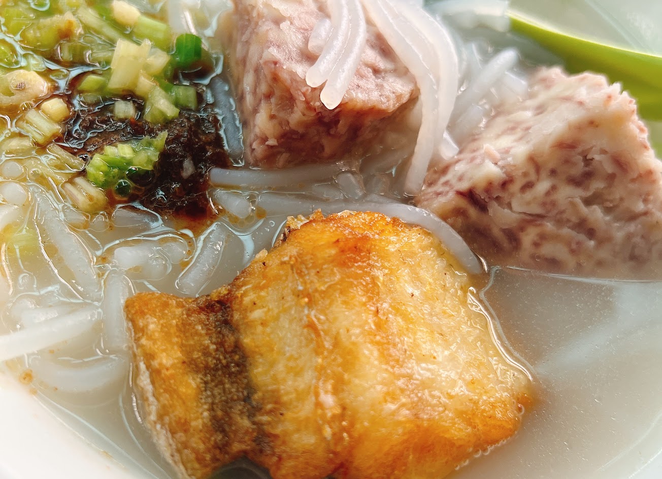 第一次吃到米粉湯裡頭有白帶魚,每碗都有2塊芋頭,湯頭清甜帶有沙茶味(我有再加胡椒粉)!米粉不是很粗,口感介於一抿就碎及軟Q兩者之間,芋頭非常鬆軟,白帶魚是用炸的,外酥裡嫩不油、不鹹也不腥!