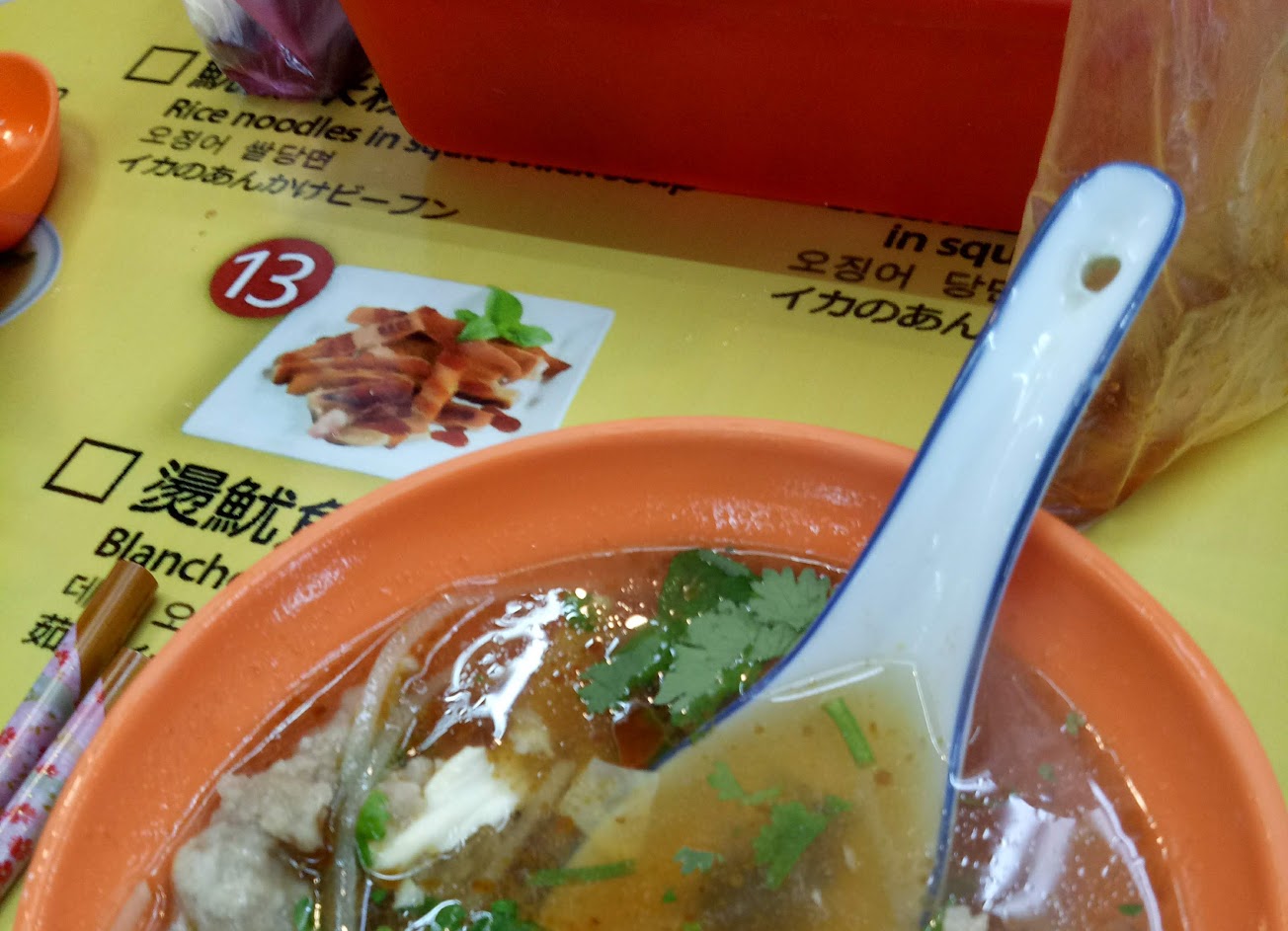 羹麵 魷魚羹麵,清湯加上沙茶調味,