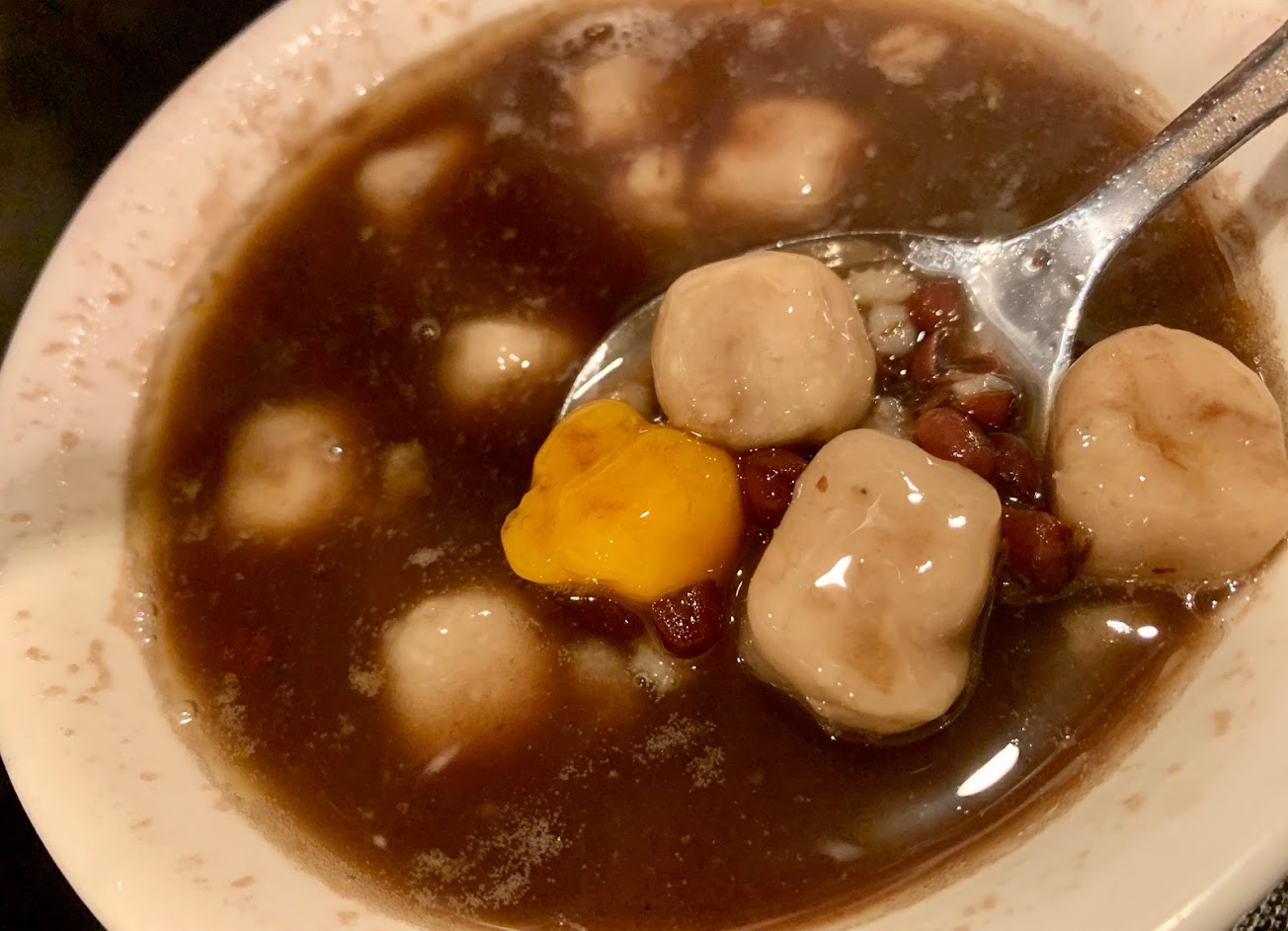 甜不辣(菜頭滷)豬血 很優,紅豆芋圓 很棒!
