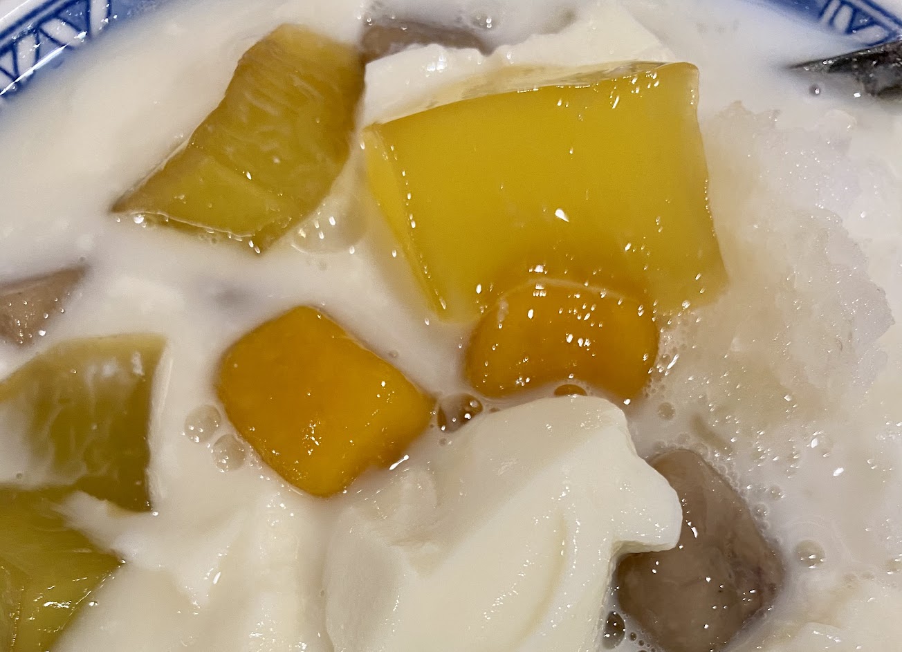 豆花芋圓加粉條….豆花柔嫩芋圓粉條口感佳…. 冰的沒碎冰糖水甜度適中