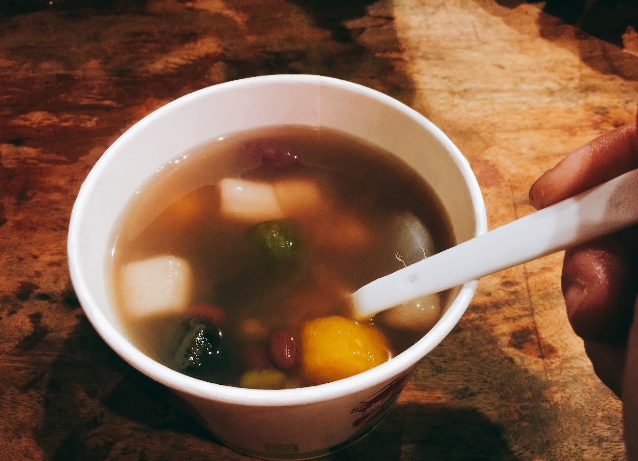 店員親切,願意配合使用環保餐袋讓我外帶;芋圓與地瓜圓比較實在,Q度和澱粉感適中,但其他綠茶山藥芝麻等觀賞價值優於口感;以觀光客食物來說價格還可以。不愛豆類甜湯的可以略過,因為配料全是豆類。