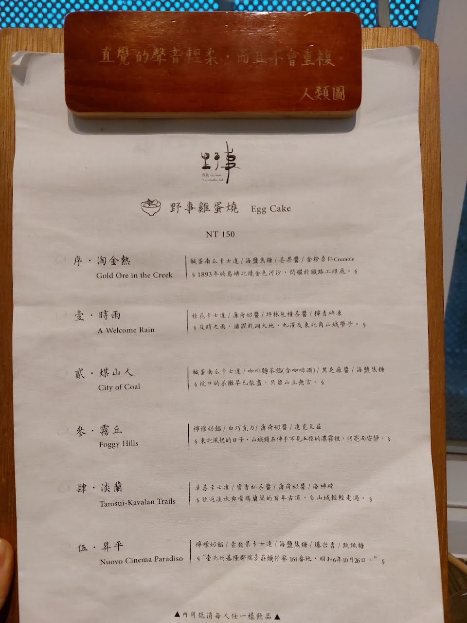 – 野事雞蛋燒霧丘:裡面有四個雞蛋燒和一片軟餅乾,荔枝內餡不會很甜但是味道很香,熱騰騰的雞蛋燒搭配奶醬,非常順口