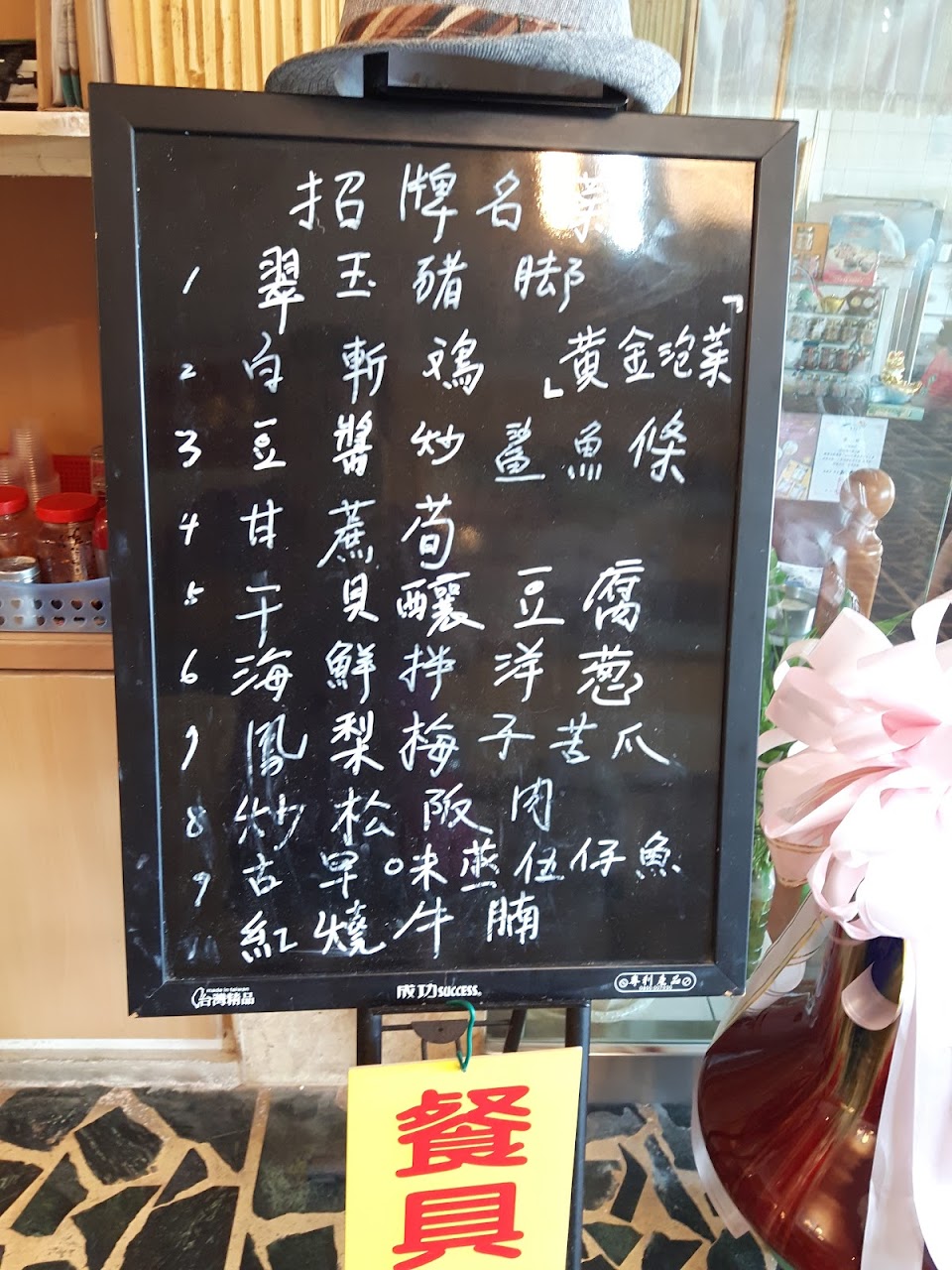 有停車場 開車來這裡方便,用餐空間寬敞,明亮 裝潢門面雖然舊了一點,但是還算整齊乾淨 至於服務呢? 服務人員都是在餐廳服務很久的員工,可不要期待大飯店等級的接待了,但是服務員都很親切的,沒有感覺態度不好,阿嬤會送錯菜,是個有人情味的地方。有一個不錯的地方,不知道大家有沒有注意到,菜單字很大,這對於現在人都提早老花可是幫了個大忙。上菜速度有點慢,若果沒辦法等待,自己要提早到,若邊吃邊等邊抱怨,這樣可完全壞了渡假的心情。 鳳梨梅子苦瓜,涼拌菜做的非常好吃,酸酸甘甜的味道。海帶豆乾也很入味。小菜感覺都好吃沒有地雷。米粉湯湯頭也很讚。照片裡兩碗米粉湯,湯的顏色有點差異,一碗可能忘了加湯頭或是調味,沒有味道…沒關係,和阿媽說一下就好…
