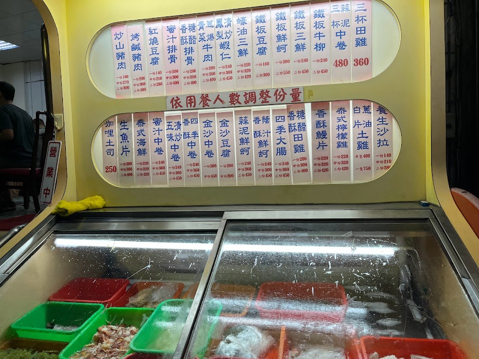 新鮮便宜的海鮮餐廳,人數少也適合前往呦,門口菜色標價清楚(水族箱裡時價計費的除外),預算得以有效控制,沒有一般海鮮餐廳高”貴”宰人的感覺,用餐環境不錯,附近停車也方便。