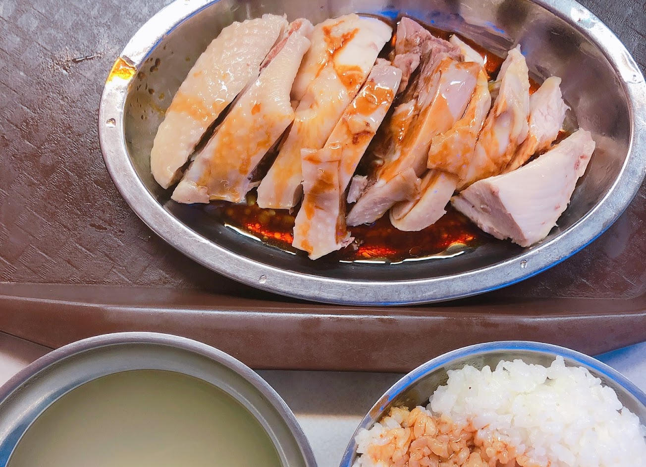點雞肉飯,有一盤雞肉、雞油白飯(上面的肉是燒肉飯的)、湯。肉還ok蠻嫩的,但是不到驚艷,湯中規中矩。加上辣椒才是靈魂,沒加辣椒就算還可以程度,加上去從75分變成80分。