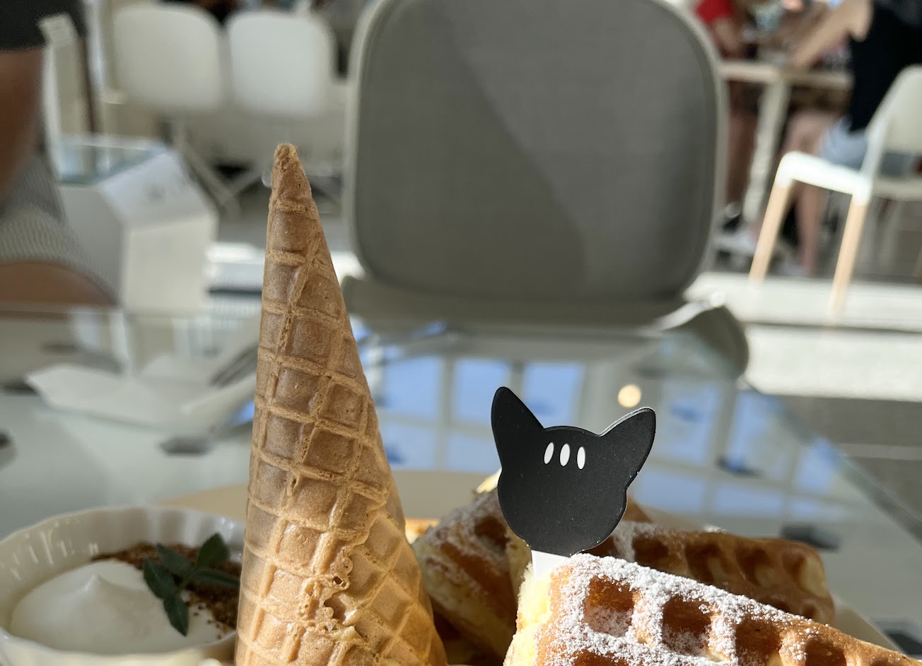 鬆餅QQ的很好吃,冰淇淋價位算高但口感綿密的很好吃,對得起這個價格