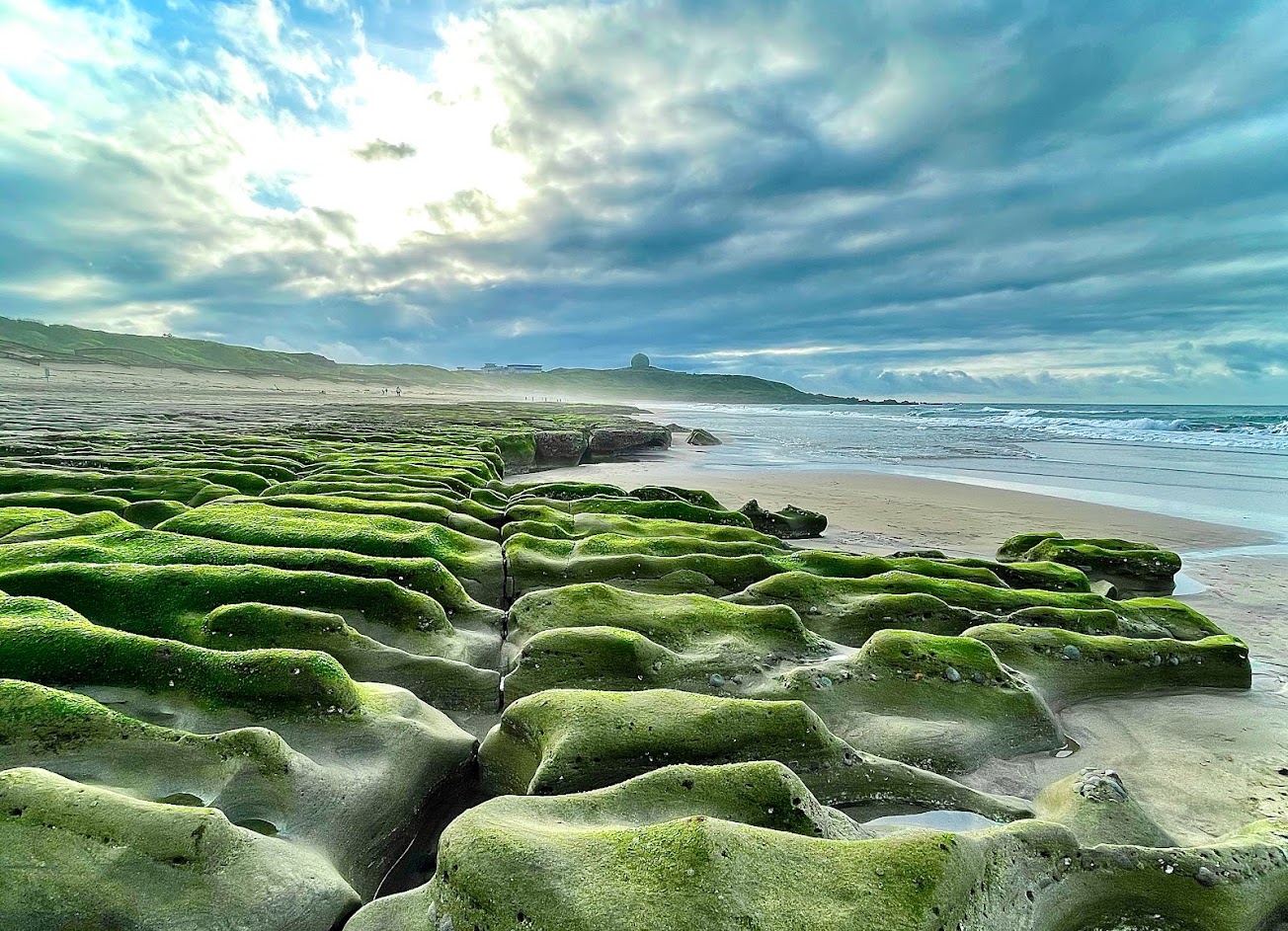 一年之中僅有一兩個月這時間海藻會附著在礁石上生長,很多人到此一遊,但請有公德心的人不要踩在礁石上拍照,也不要放任小朋友們在礁石上戲水,以免被浪捲下海。