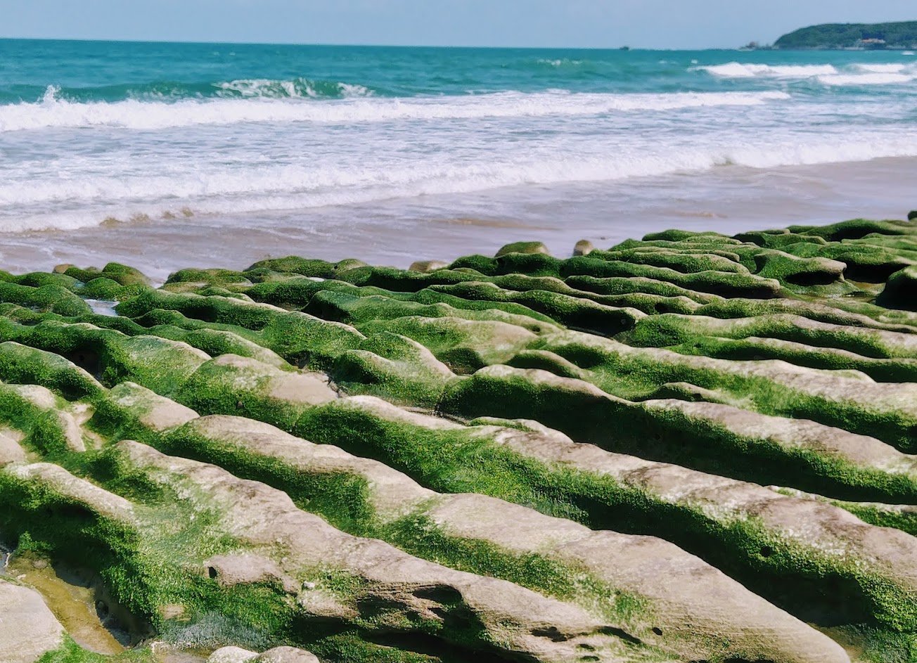 國內外罕見的地貌,每年春夏之際大量綠藻附生在石槽上,沿著海岸走美不勝收!