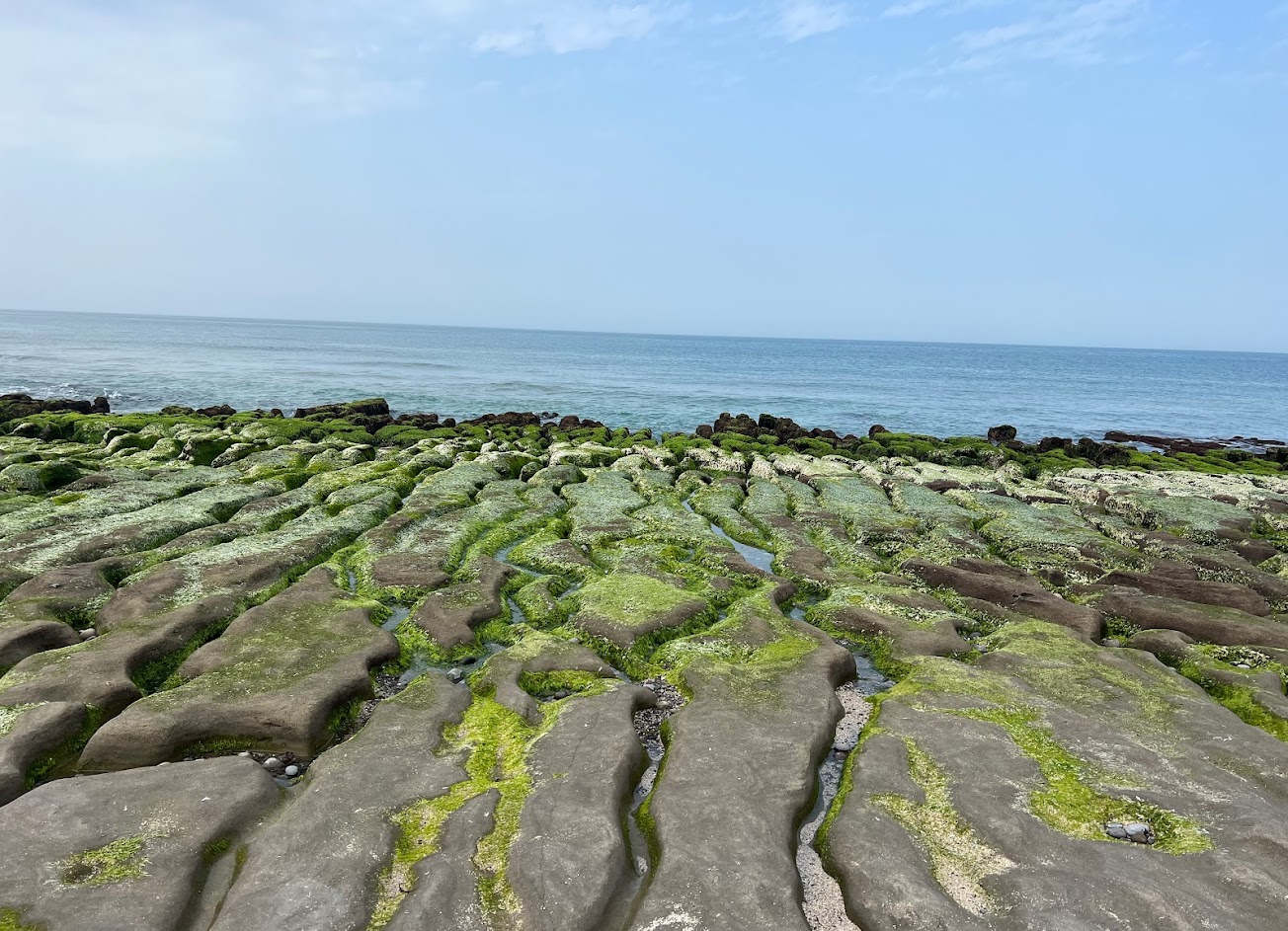 每到春天,石槽上長滿綠色海藻,形成季節限定的特殊景觀及無敵海景,非常適合來吹吹海風踏踏沙,看看風景聽浪。