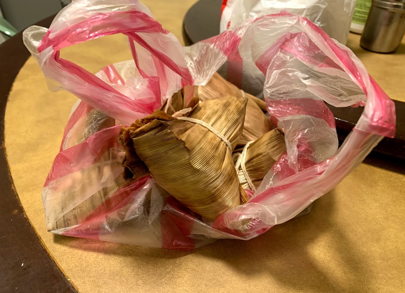 100元5個大肉粽cp值很高哦!…..來石門不帶幾串回去真是太對不起自已良心了
