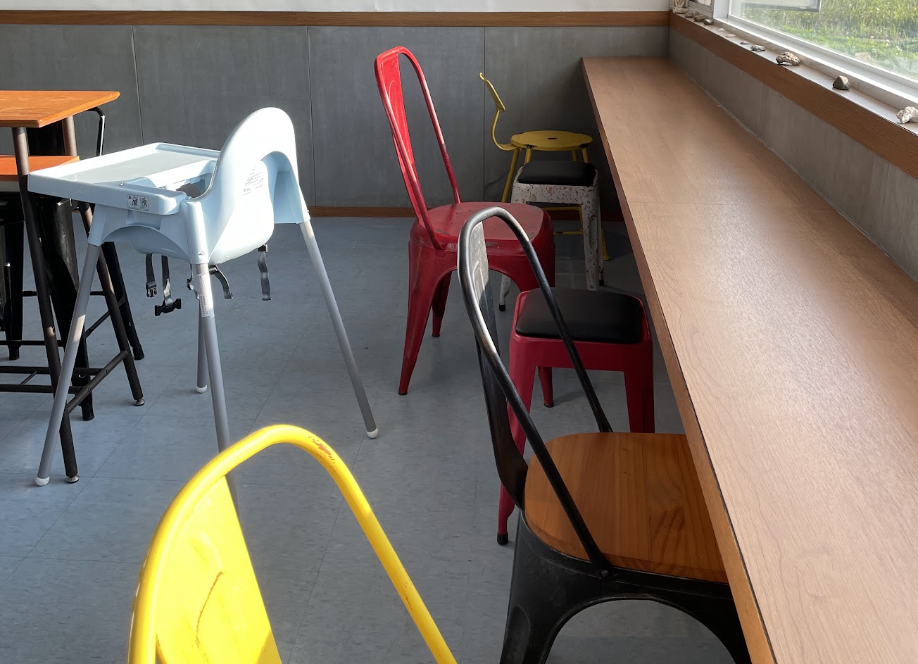 非常悠閒的地方,剛好來的時候也沒什麼人。坐在店裡看海吃甜點真的很愜意,牆上的塗鴉也非常可愛,推薦大家來拍照。