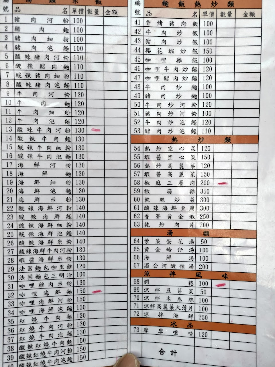咖哩雞飯 咖哩雞肉飯 摩摩喳喳 椒麻雞 酸辣豬肉細粉 法國麵包三明治 法國麵包咖哩雞 咖哩 海鮮 湯麵 紫菜蛋花湯 月亮蝦餅 海鮮炒公仔麵 豬肉炒泡麵 潤卷 涼拌海鮮 酸辣海鮮麵 涼拌青木瓜 絲 櫻花蝦炒飯 咖喱飯 酸辣牛肉麵 涼拌高麗菜大薄片