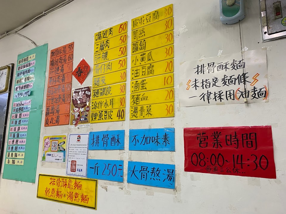 排骨酥湯麵 麵粉粉爛爛 湯頭沒什麼味道 排骨酥一般 大碗$90 小碗$80。嘴邊肉$60一點點 吃起來普普通通。 吃完的想法就是 完全不是純樸小鎮的小店美食 根本就是吃起來非常普通偏難吃的一間觀光點的店 生意還能不錯 非常驚訝。