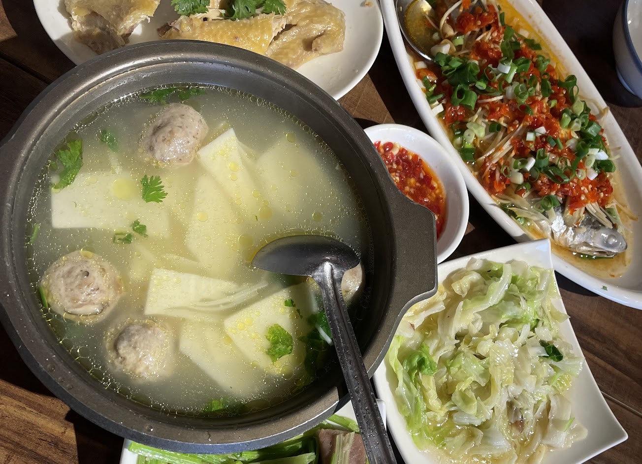 2人用餐4菜一湯,外堂大姐說十人一桌是十菜一湯。 芋條非常Q彈,原來是祖傳做法。 白斬雞是阿媽做法,不像土雞城那麼肥嫩。 可能客人多,大姐招呼客人時都不會問有什麼不吃,吃不吃辣。