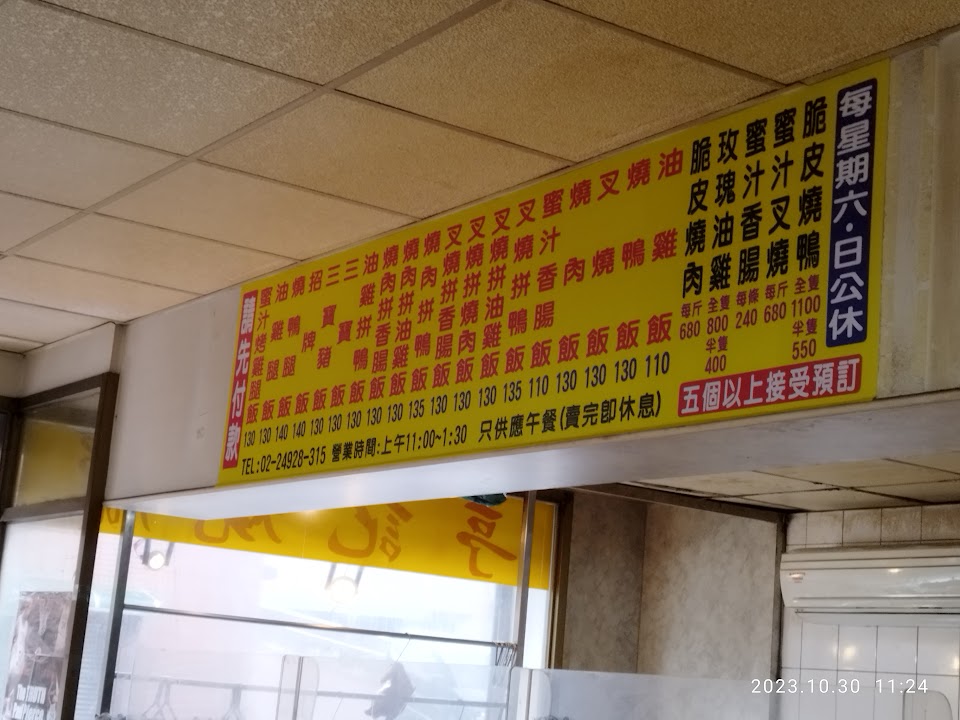 對了,餐廳營業時間11:00-13:30,如果沒有開門前就去排,還會買不到燒肉(脆皮燒肉)哦。(11:30排,12點才輪到點餐,燒肉就沒了)