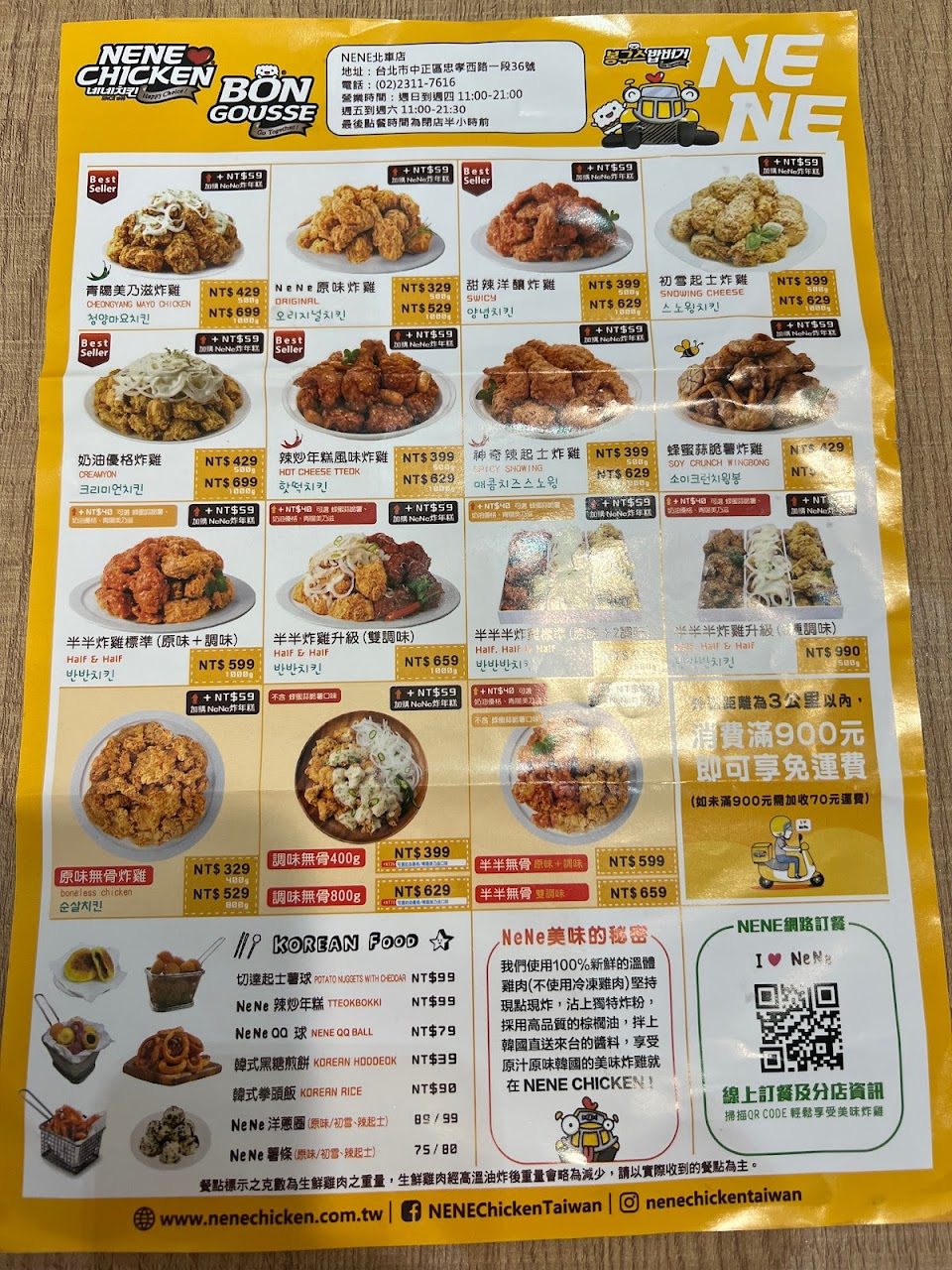 2024最新在地推薦餐廳的菜單_NENE CHICKEN 北車店的菜單、圖片