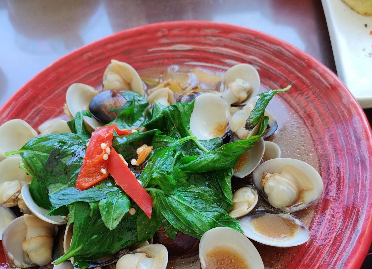 坐在大面玻璃海景桌位,面對海灘及基隆嶼,美食配海景讓人心曠神怡,什麼壓力都忘記了,清蒸花蟹鮮甜可口,想吃萬里蟹來這就對了