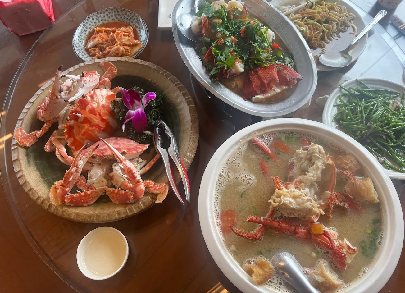 點了活魚、三點蟹、蝦子、軟絲、海瓜子、青菜、排骨…一大堆!