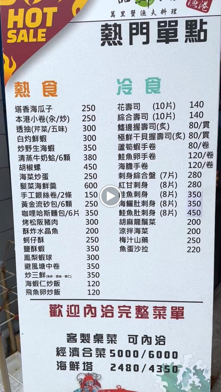 2024最新在地推薦餐廳的菜單_一品鮮水產漁夫料理/舊店新開/萬里蟹/龜吼美食餐廳/龜吼美食/萬里海鮮/萬里名產的菜單、圖片