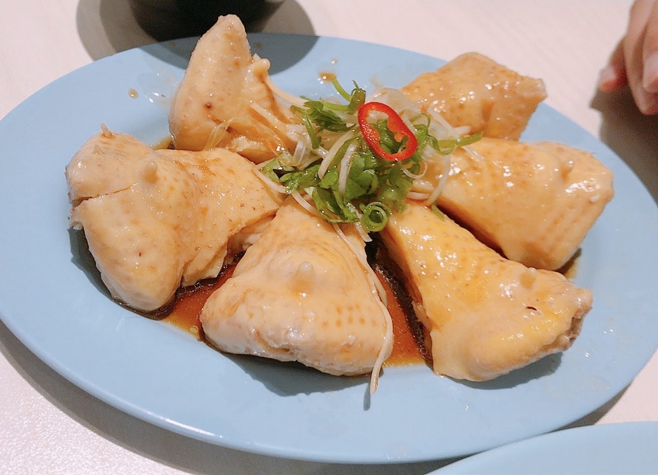裝修後第一次來,不知為什麼覺得整個餐點也升級了。 雞肉套餐$240、雞腿套餐$270。 雞肉好吃、份量也夠,覺得比附近的海記好吃很多! 不得不提,魚丸湯的魚丸好吃,皮薄口感脆! 春雞反倒是覺得不錯、但沒有驚艷、跟其他餐館差異感不大。