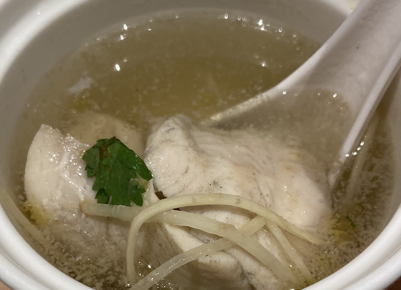 餐廳乾淨明亮,一開始只有高腳位但詢問後也願意幫我們移到普通桌。整體味道偏甜味,但不會太超過,海南雞雞皮厚實,酸菜是甜的很驚艷!湯有好湯底、甜點小巧美味,附餐青菜是醬拌豆芽菜感覺有點可惜。