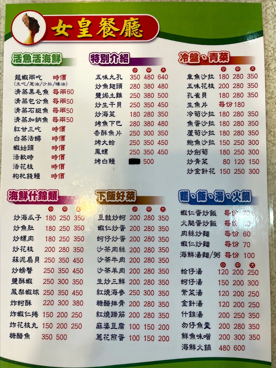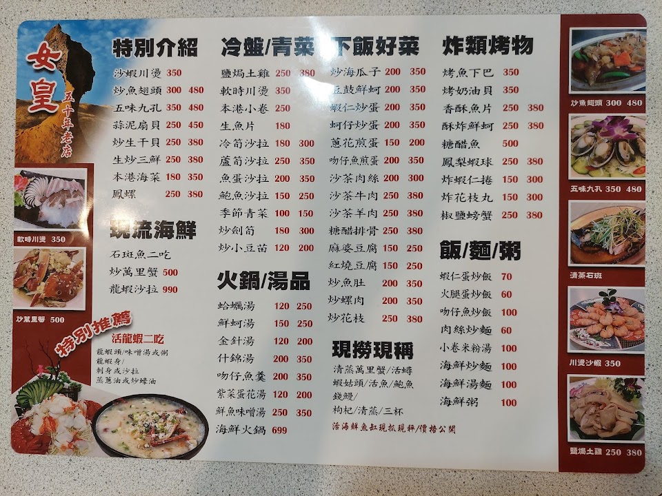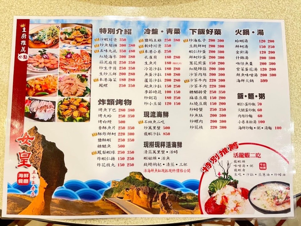 2024最新在地推薦餐廳的菜單_女皇餐廳-萬里美食|萬里蟹推薦|萬里海鮮餐廳|野柳美食|野柳海鮮推薦|野柳必吃美食|龜吼海鮮的菜單、圖片