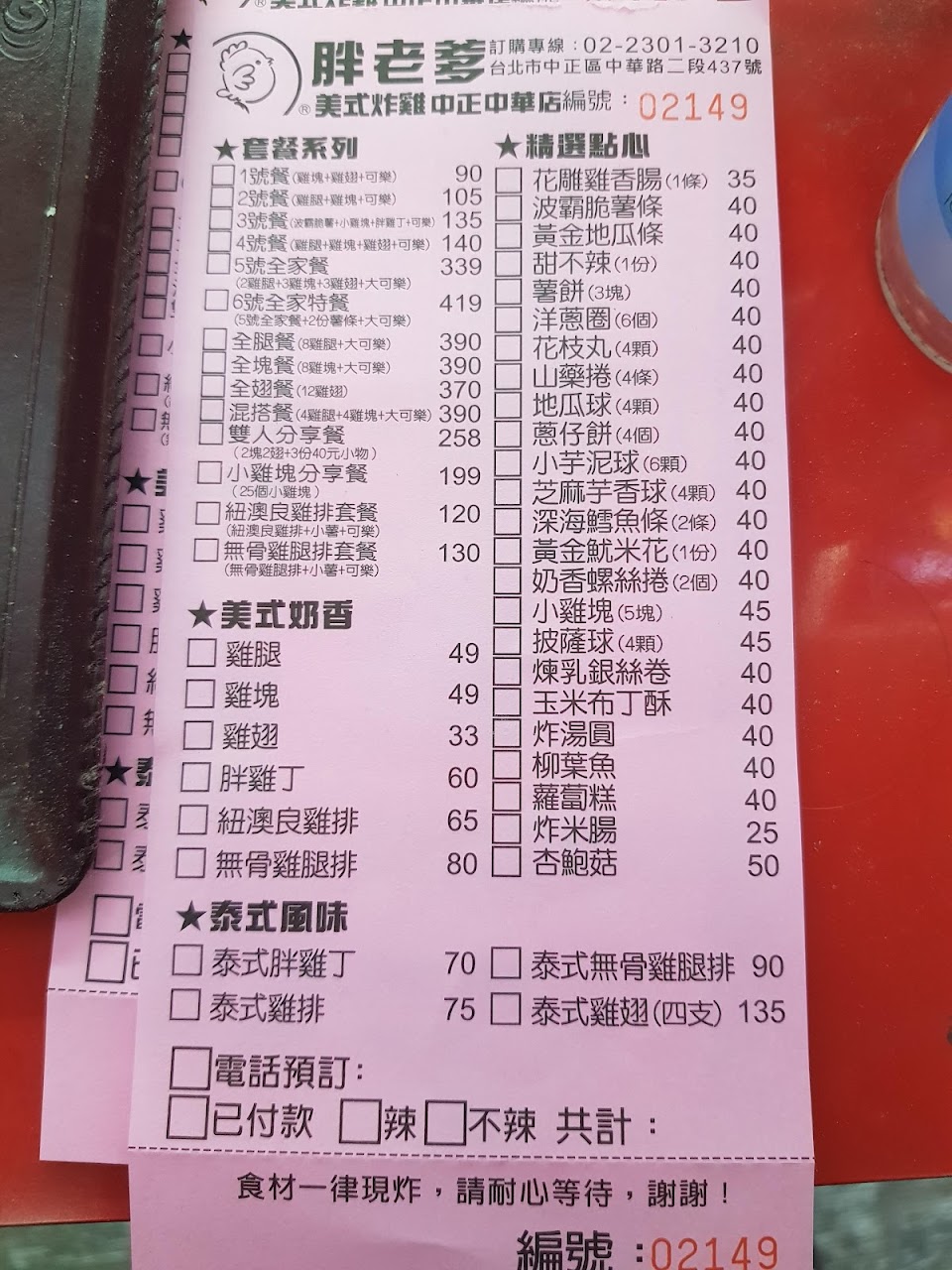 2024最新在地推薦餐廳的菜單_胖老爹美式炸雞 中正中華店的菜單、圖片