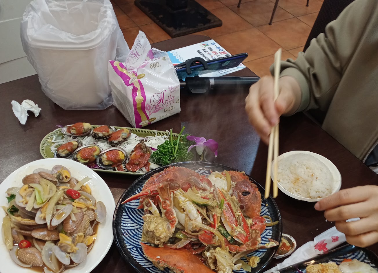 吃到一半老闆說我們選的螃蟹太瘦