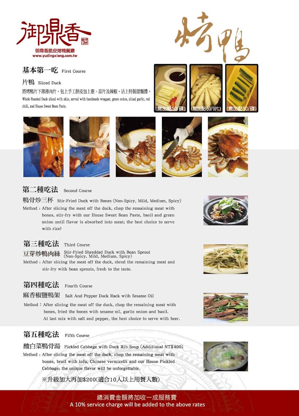 酸白菜鴨骨湯 烤鴨二吃—炒三杯 麻香椒鹽鴨架 片皮鴨餅 片鴨