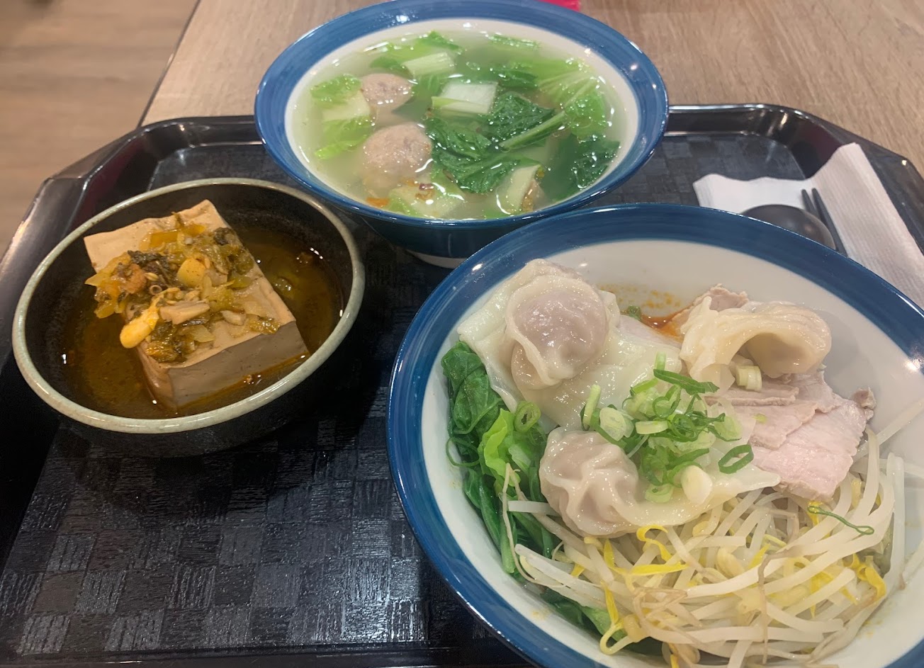 麻辣抄手麵(有花椒香、小辣) 鴨血、豆腐 青菜 牛肉麵
