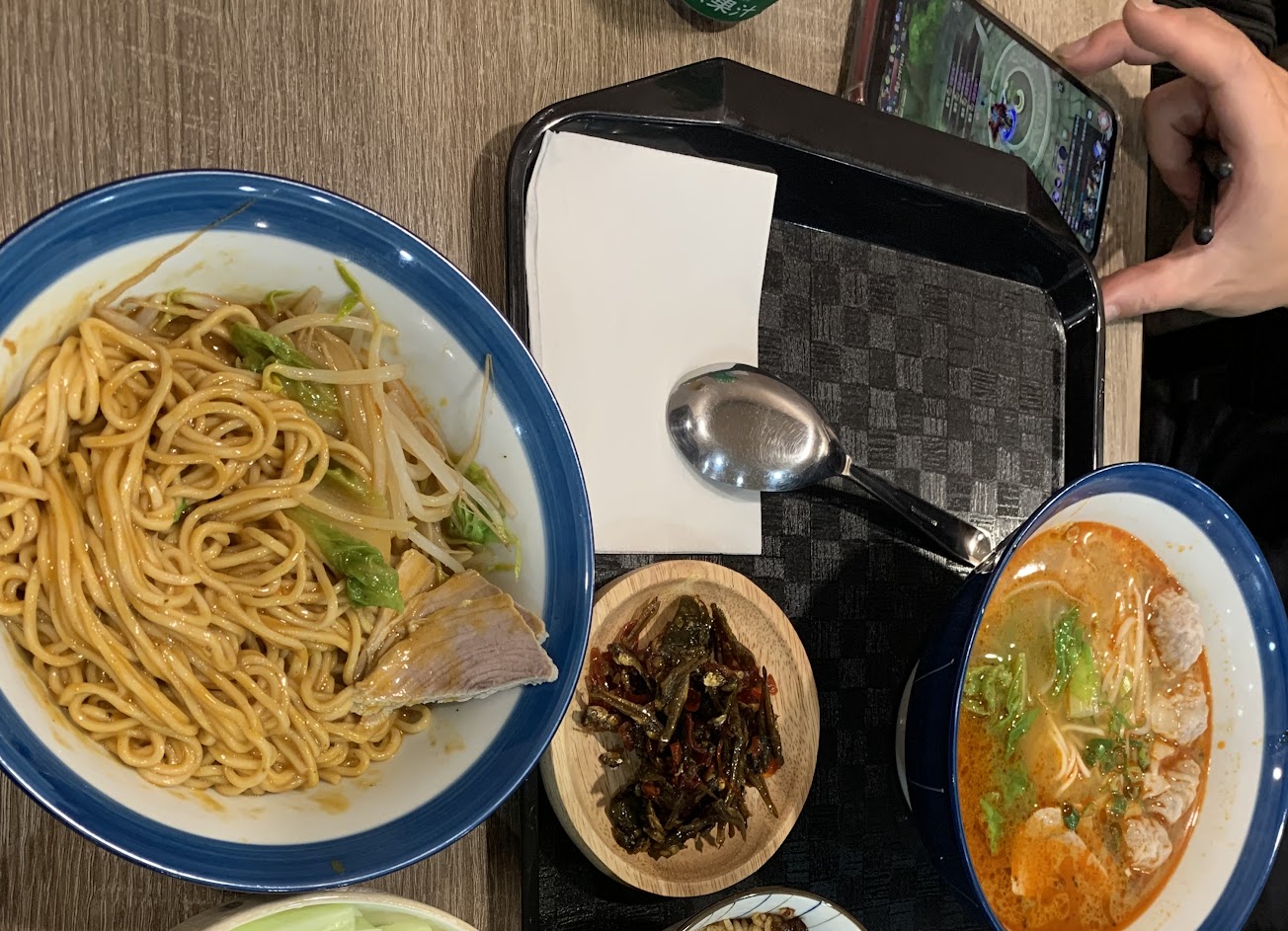 今天路過食碗麵,一開始很好奇菜單內容,剛好晚餐時間看環境簡潔明亮,於是進來嚐嚐看。點了油香抄手意麵和滷味、小菜,竟然意外好吃,有些驚訝!酸菜鴨血湯很清甜,但是上菜的瞬間一掃而空,已來不及拍其他照~筆記~下次再來? …