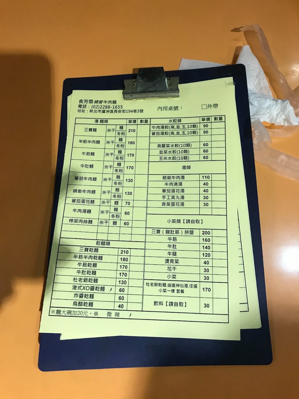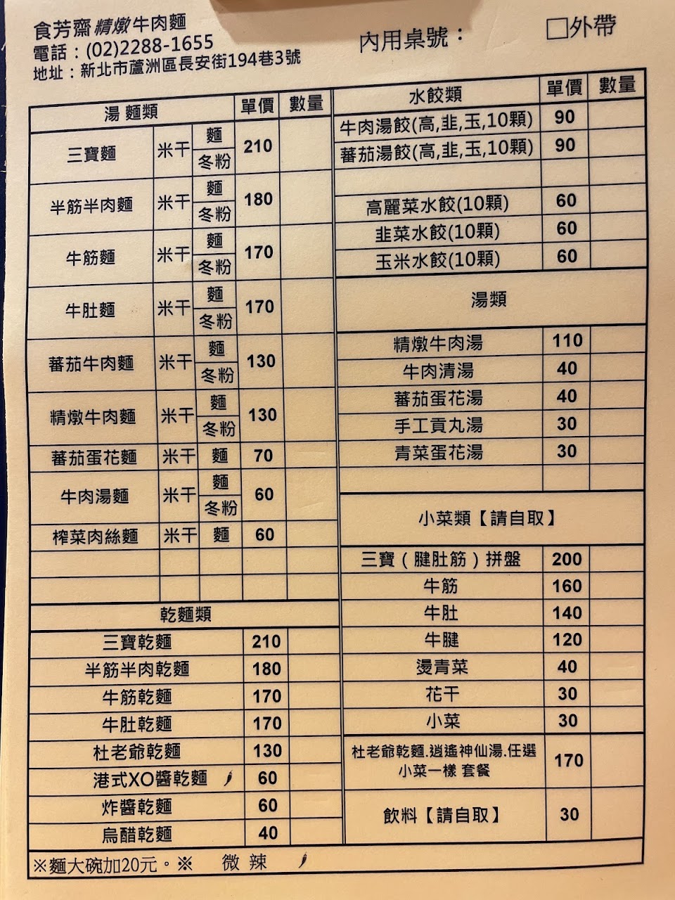 餐點的水準一流,可以說是蘆洲地區牛肉麵的翹楚