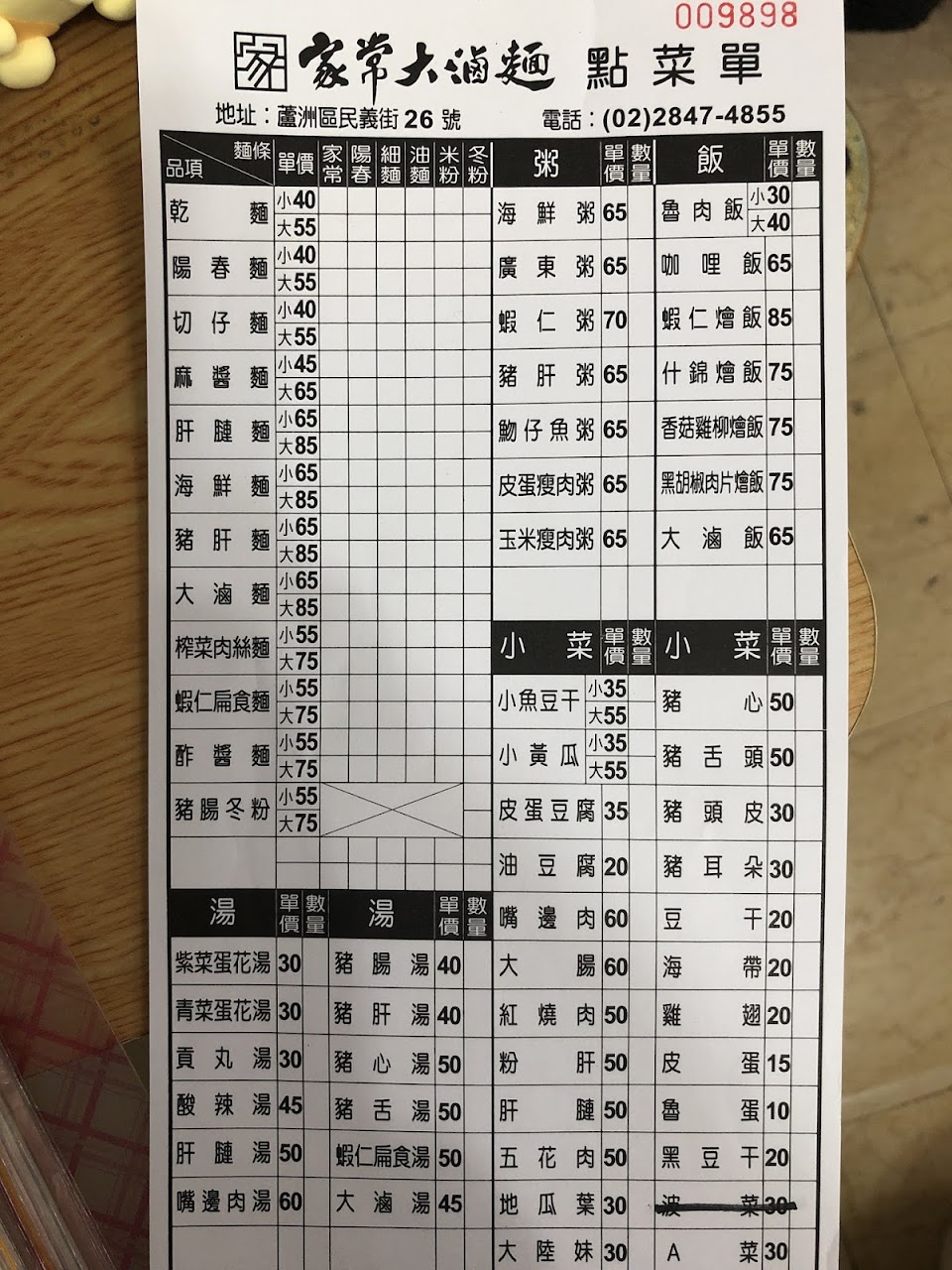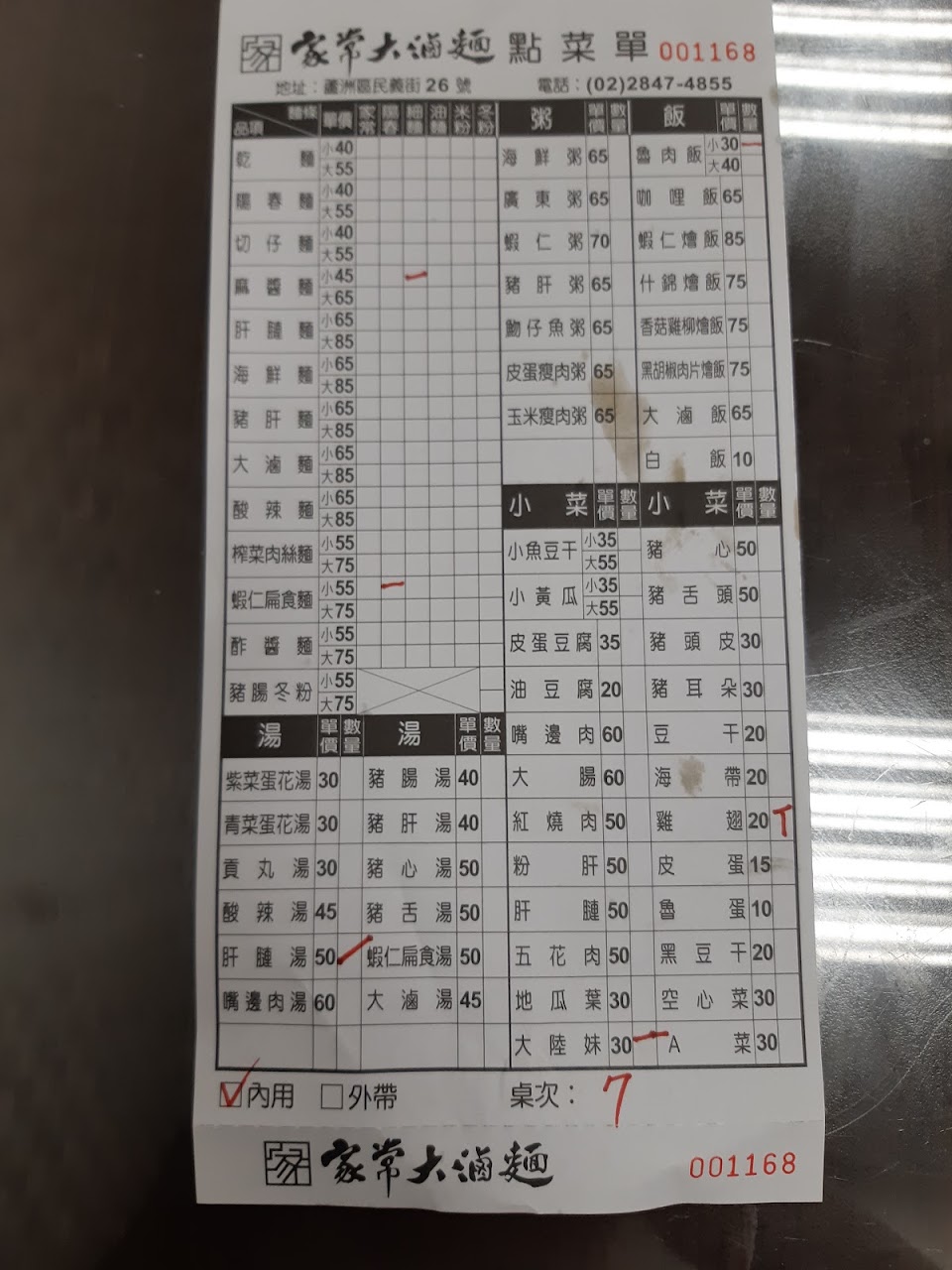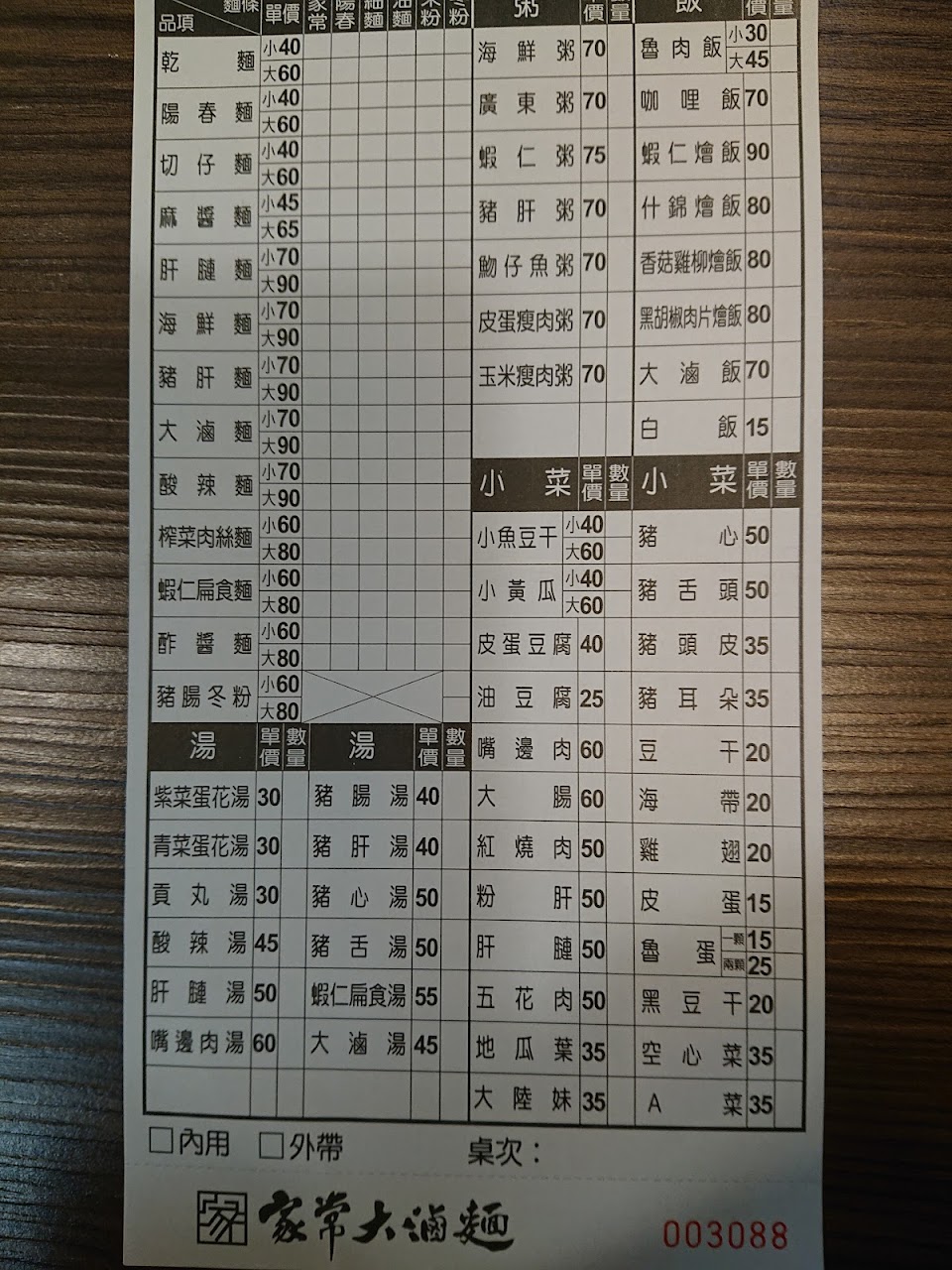 口味跟份量都很ok,本來覺得櫃檯上貼心放了幾個小印章,讓客人自己不加什麼東西的需求,今天去買了外帶蓋了不加蔥花,回到家蓋子一開其中一碗麵還是加了蔥花,雖然還是可以接受,只是覺得那讓客人蓋章有什麼意義??