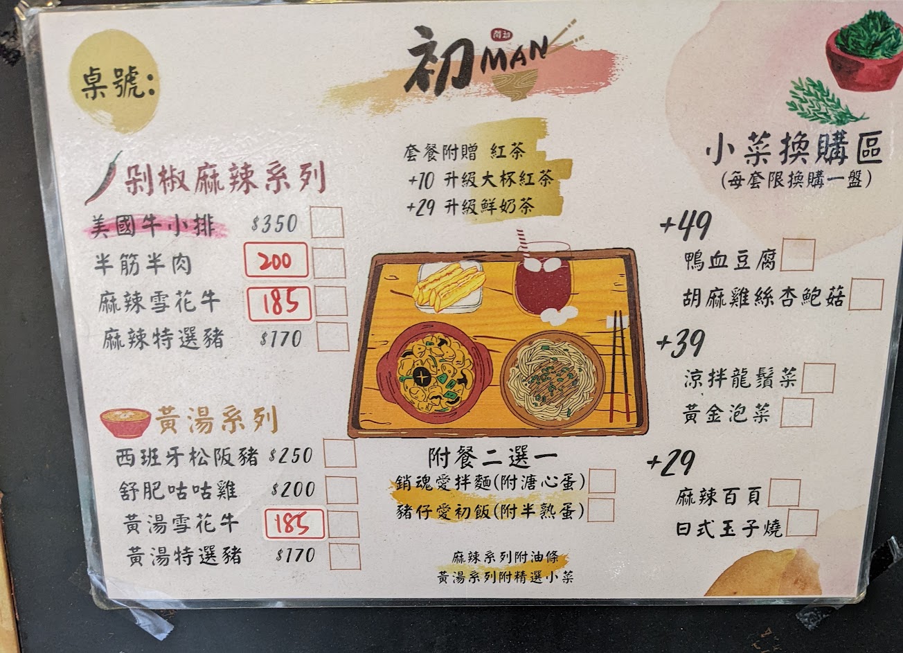 今天點了銷魂麵套餐+麻辣特選豬、單點銷魂麵