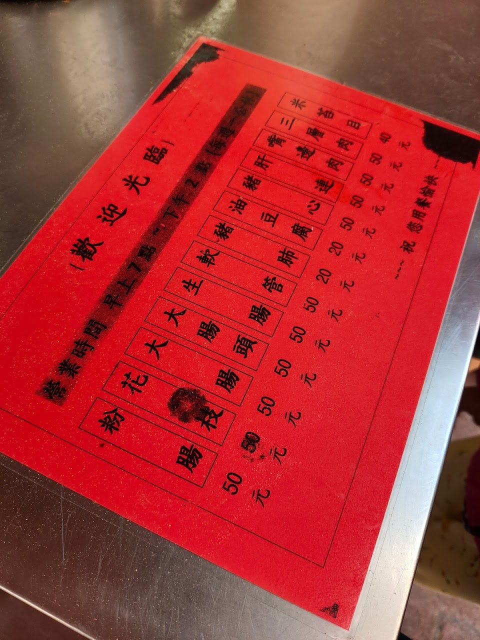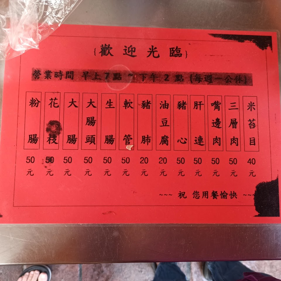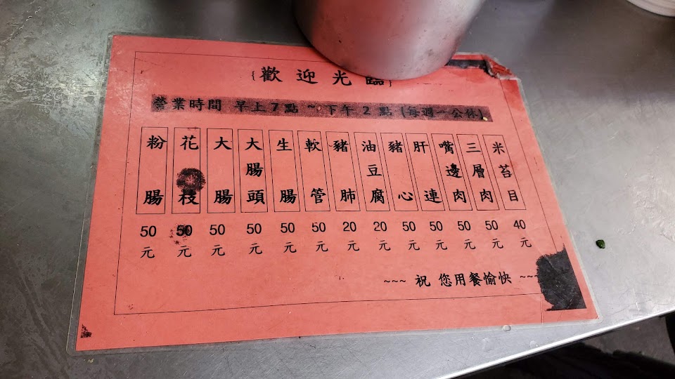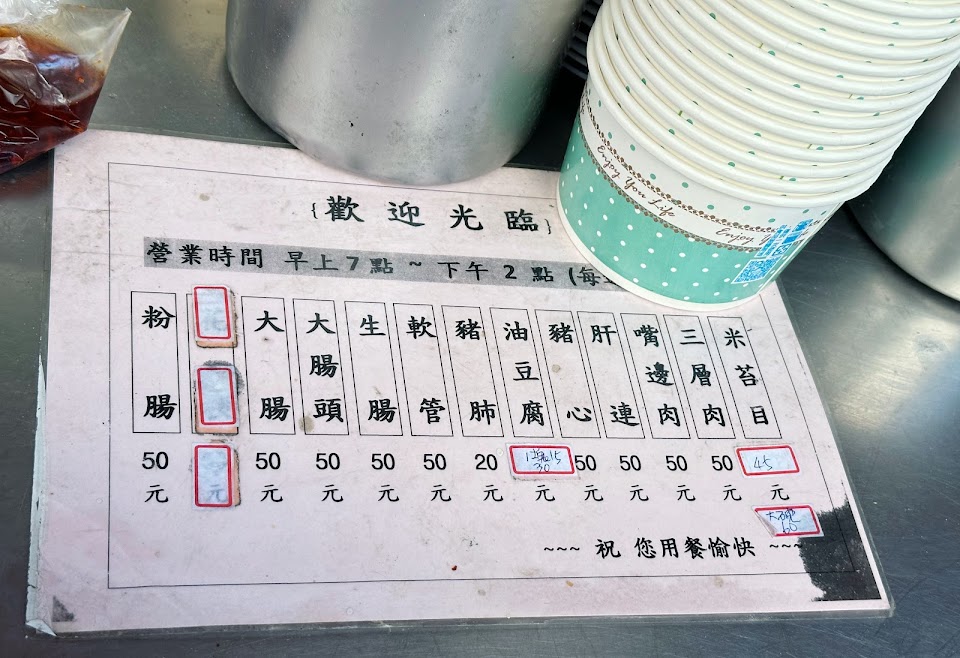 大腸頭跟油豆腐都超讚,桌上有真的辣油(不是甜甜的辣醬!)加了很讚,可以加湯,米苔目也很好吃,韭菜也很夠味。