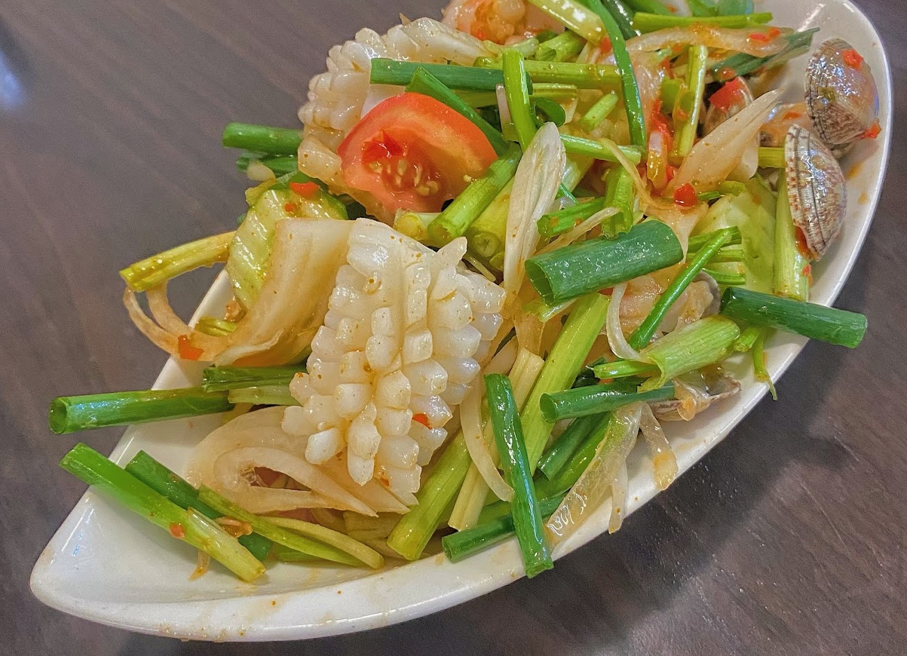 店內位置大約7-8桌,可容納30人左右,因平日用餐,大部份人都外帶,只有我們一桌,老闆也很親切招呼,我們二人點了涼拌海鮮/蔥爆牛肉/泰式炒河粉/月亮蝦餅小份..口味屬於台灣改良版的泰式.蠻合我胃口,份量都很十足,我們吃不完還打包了,價格也很平實.會再找朋友來吃…
