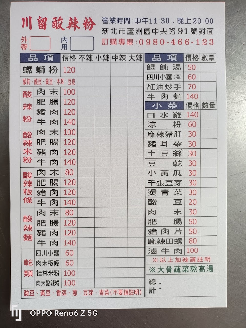 2024最新在地推薦餐廳的菜單_川留酸辣粉(原 葉子酸辣粉)的菜單、圖片