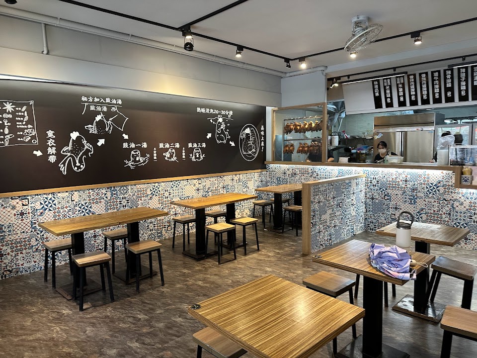 港式油雞很好吃,但千萬別一次吃太多,否則會膩。雞屁股剛咬下去時鮮嫩多汁,但兩三口後,油膩感湧上,一盤四個,只好去皮與去肥油層才下嚥,真的很油喔!後段腿部蠻推的,蘿蔔泡菜與酸菜解點油膩絕配!炭火燒肉飯味道還不錯但總覺得價值感稍低,只因豬腱肉沒了。菜量蠻夠的,但飯實在不怎樣,太硬了。值得一提的是藥膳清湯非常好喝,一口肉一口湯盡是滿足。絲襪奶茶so so。5百多元在蘆洲你覺得呢?