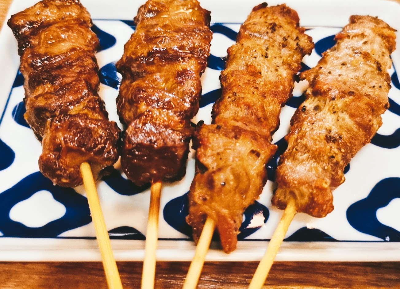 肉串類的烤物 因為包覆的肉片較薄 烤醬也少 加上搭配的蔬果.少了油膩感 也吃到食物的原來風味 加上老闆的烤功…很棒!肥腸 烏冬…有一點點鹹了…烤雞翅真的特別好吃.沒有大口吃肉的爽勁 確多了味蕾的滿足感。