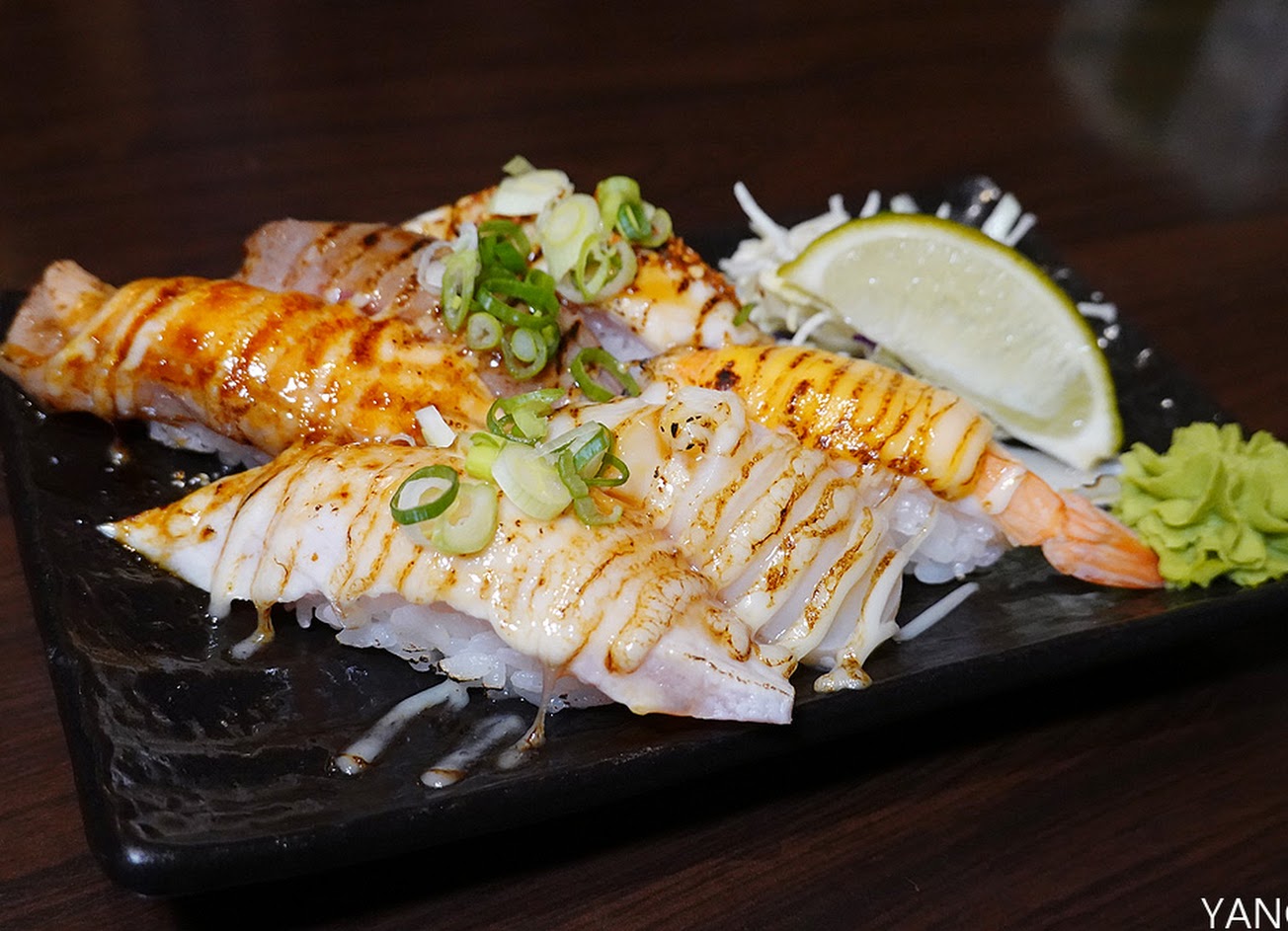 鮭魚、炙燒起司鮭魚壽司好吃 干貝壽司一般