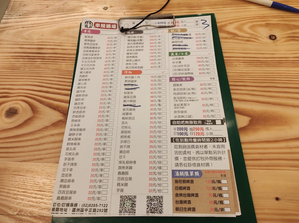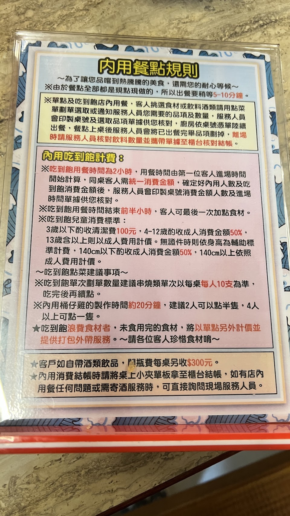 店面寬敞,食物串類炸類還不錯,平日吃到飽是629,但坦白說除了串烤,份量都很大,很多人吃的單點價格根本到不了629,建議第一次來勇敢單點多一點,如果總價平均一人超過629下次再考慮吃到飽,朋友大部分一人吃到450元左右就會「撐」了