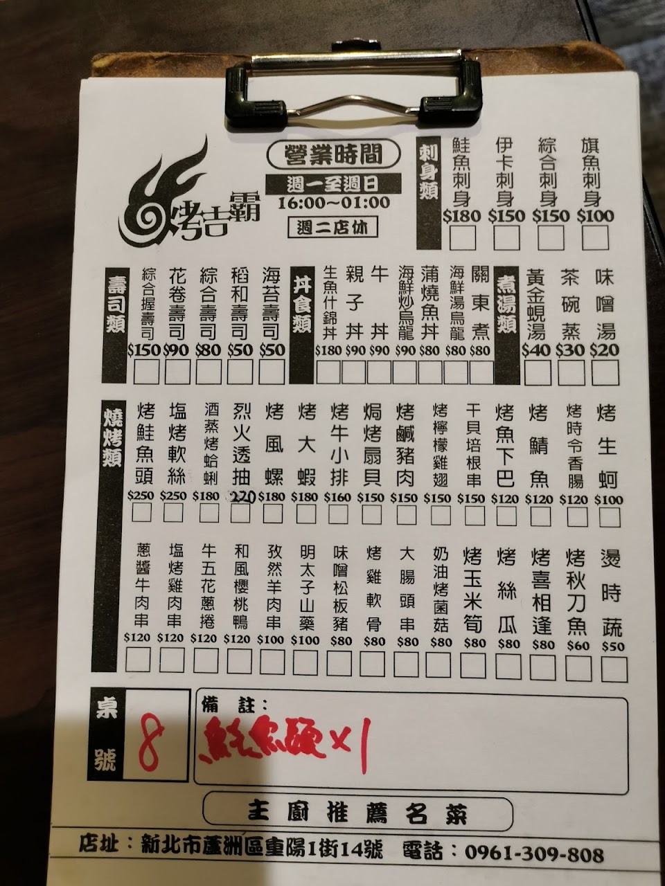 2024最新在地推薦餐廳的菜單_烤吉霸 日式燒烤,生魚片的菜單、圖片