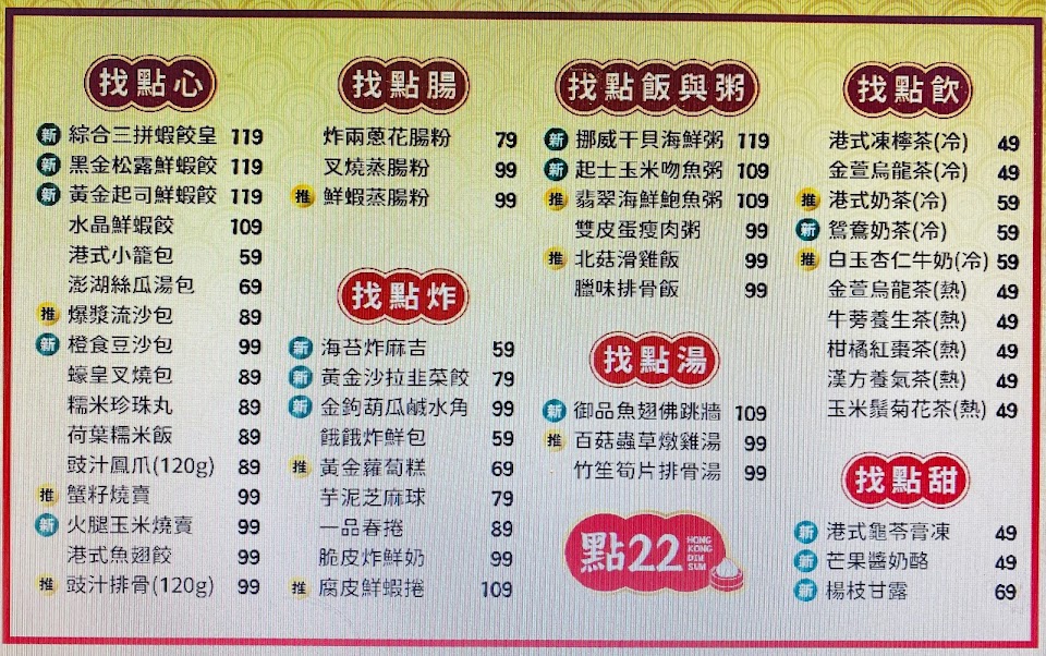 2024最新在地推薦餐廳的菜單_點22 港式點心專賣店 蘆洲店的菜單、圖片