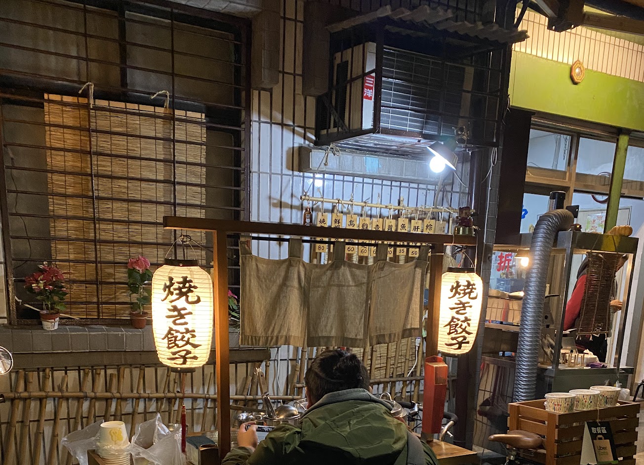 巷弄裡有點日式風格的小攤, 煎餃餅很特別吃的時候要小心會流出汁來, 很特別的一道料理。