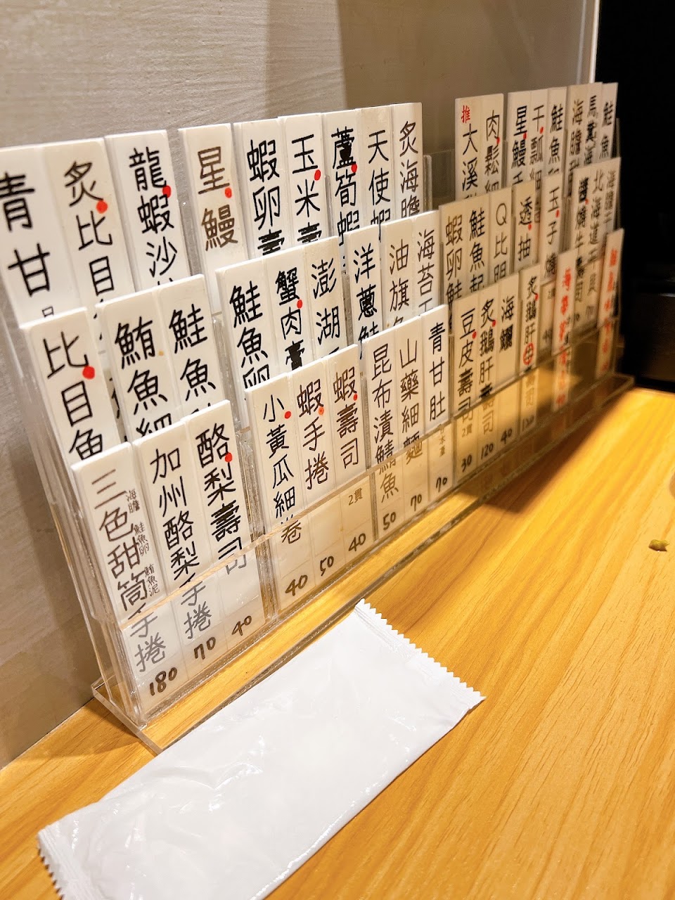 桌面擺了握壽司的卡片,讓人看了很想一直點。