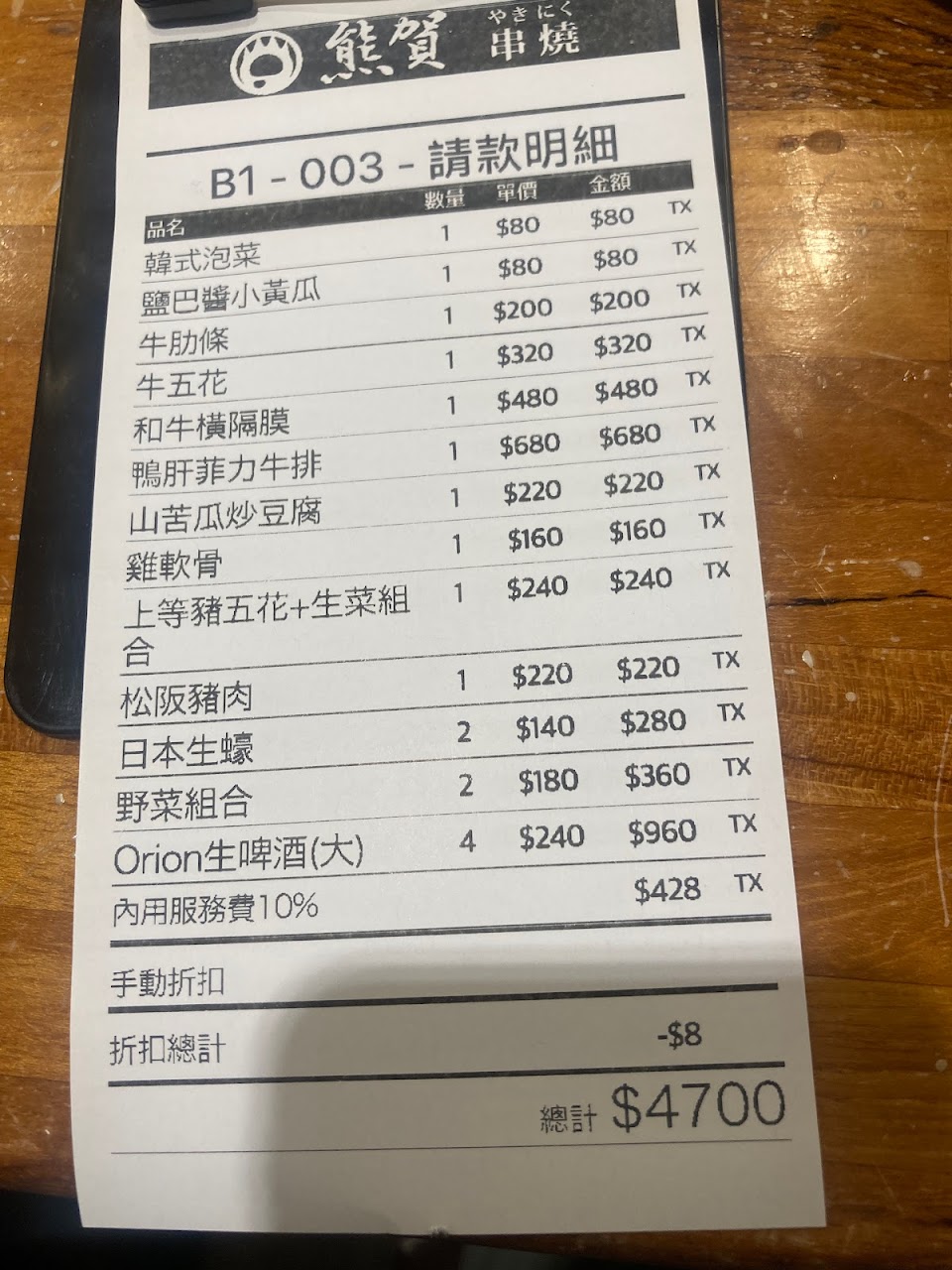 消費價格在蘆洲地區來說算高,座位過於擁擠點,整體燒肉品質與服務態度不錯。