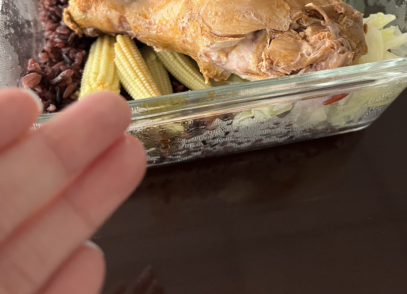 健康營養的午餐便當!香料雞肉味道濃郁,肉質鮮美不柴。下面鋪著一層紫米飯,健康加分!